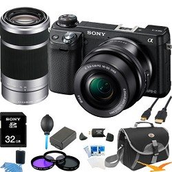 Buy Sony NEX-6L/B NEX6 NEX-6 NEX-6L 16.1 MP Compact Interchangeable Lens Digital Camera with 16-50mm Power Zoom Lens and 3-Inch LED (Black) Sony 55-210mm F4.5-6.3 Lens ULTIMATE BUNDLE with 32GB High Speed Card, Spare Battery, Deluxe Filter Kit More! Today!